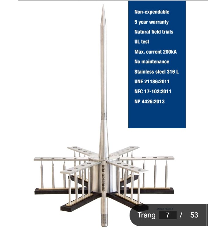 3.Các tiêu chuẩn quang trọng kim thu sét Ingesco pdc 4.3
