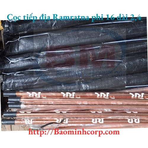 -Cọc tiếp địa bằng thép bọc đồng phi 16, dài 2.4 mét. Hiệu: Ramratna. Xuất xứ: Ấn Độ-Cọc tiếp địa bằng thép bọc đồng phi 16, dài 2.4 mét. Hiệu: Hex. Xuất xứ: Ấn Độ
